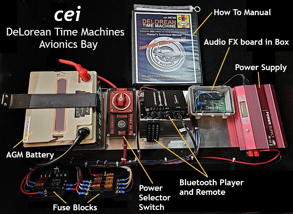 Our Avionics Bay is designed by a former NASA engineer and loaded with Audio/Visual special effects. It is completely housed in the front cargo/trunk of the Delorean. Professional high quality engineering goes into each of our builds. Our competition does not offer this level of engineering because they